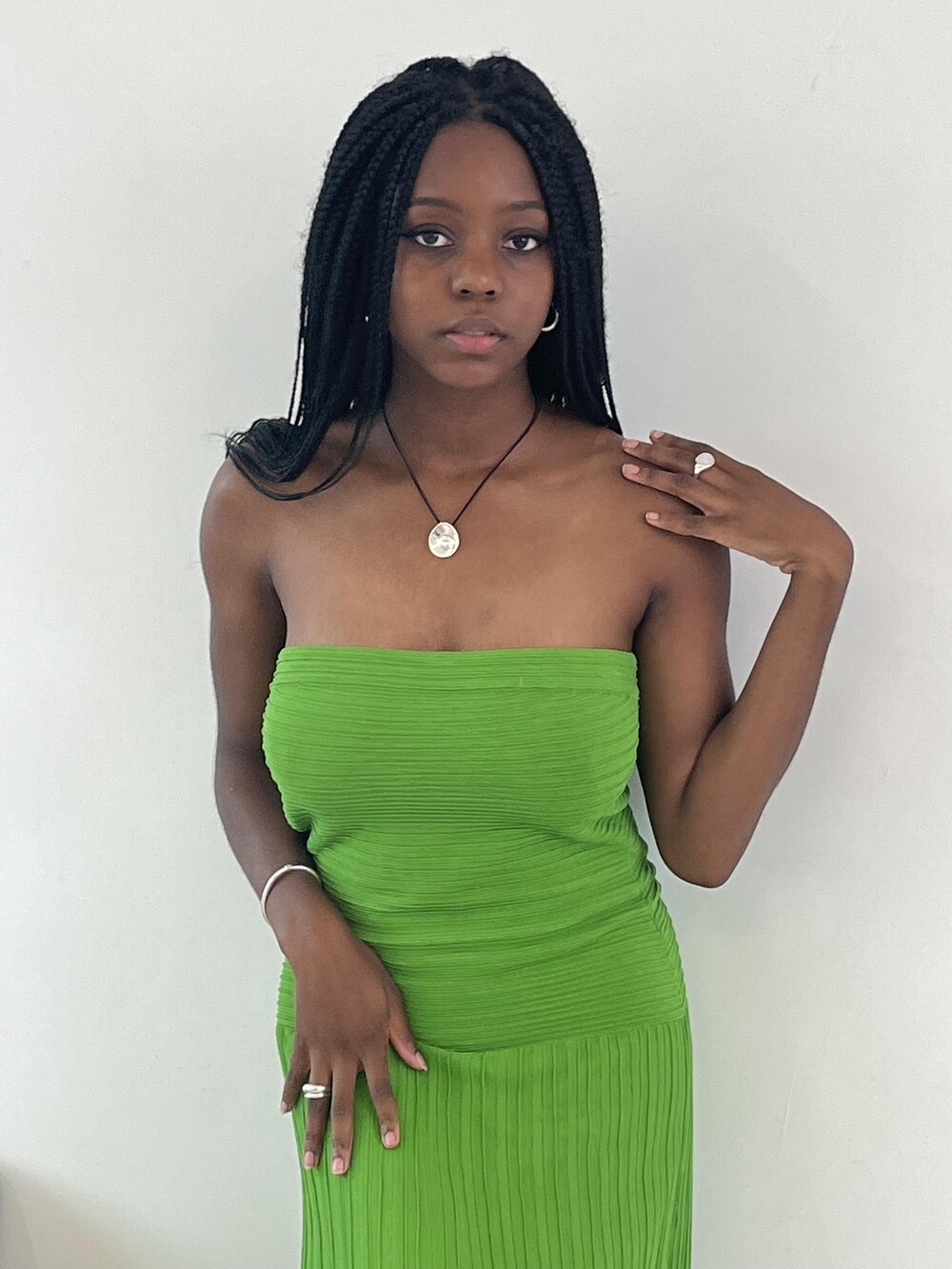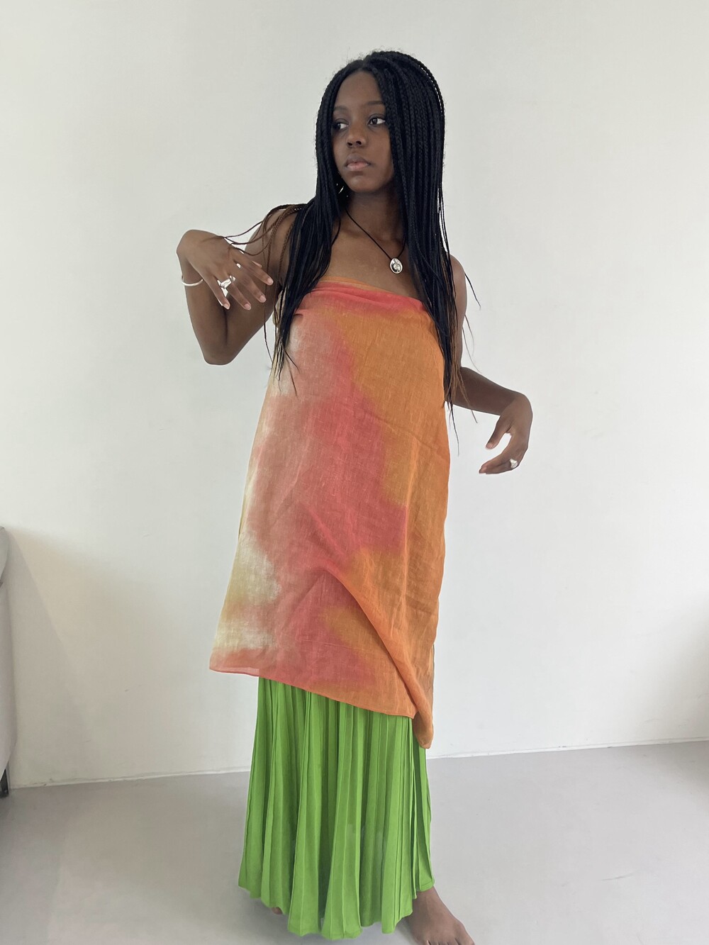 원하는 넥 라인에 맞게 자유롭게 두 번 매듭지어 착용할 수 있습니다.