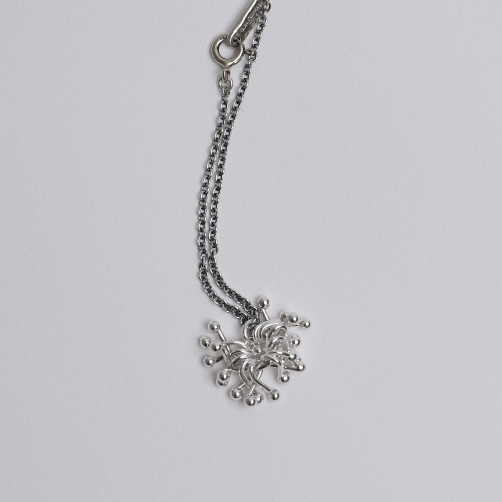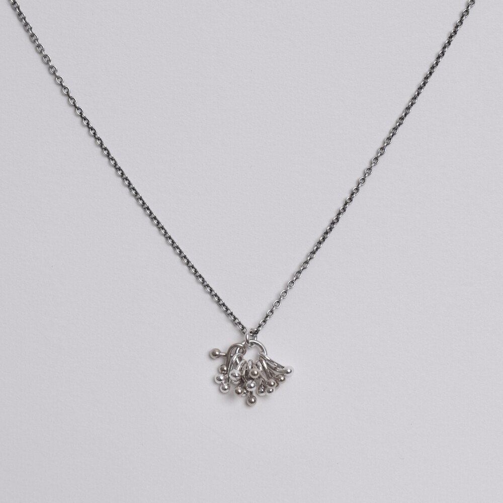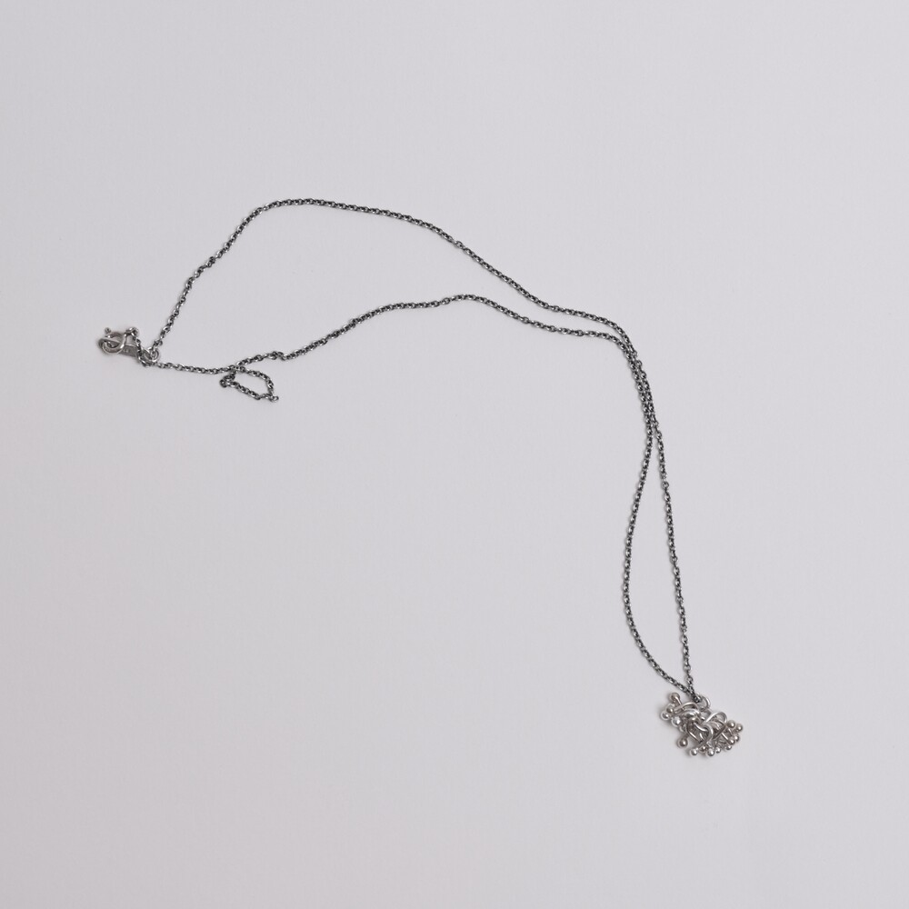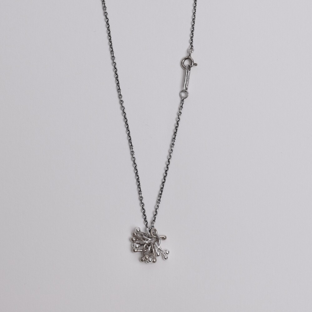실버 참들이 모여 하나의 덩어리를 이룬 펜던트가 포인트인 네크리스입니다.