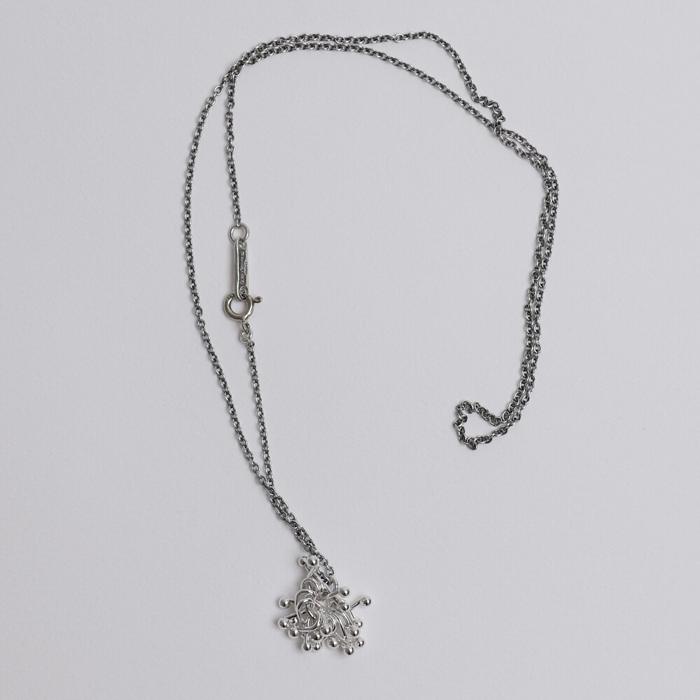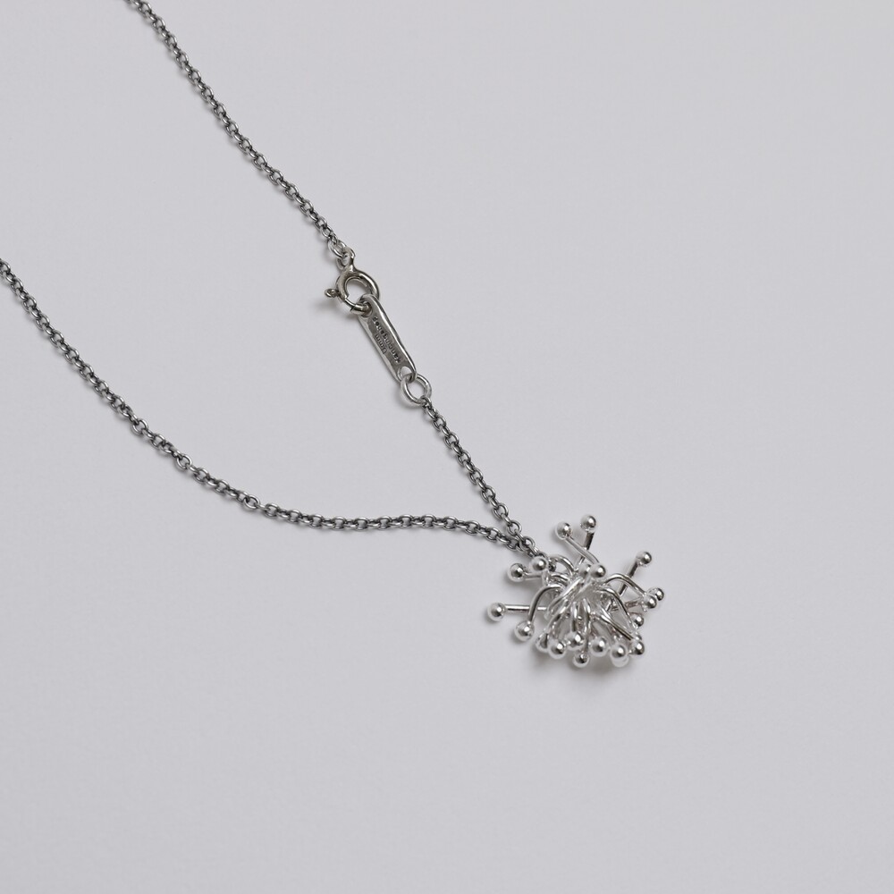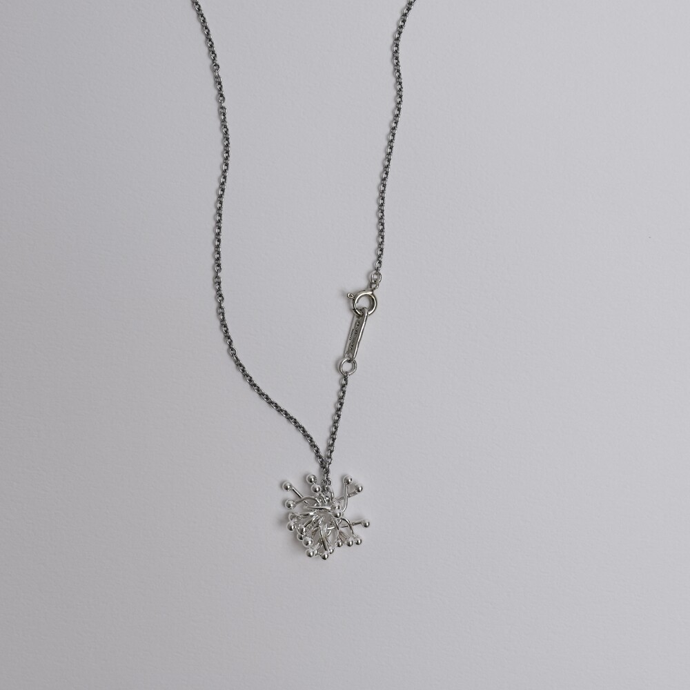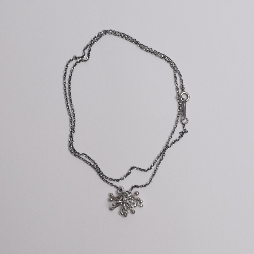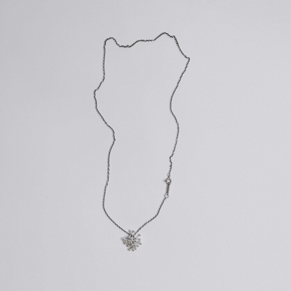 실버 참들이 모여 하나의 덩어리를 이룬 펜던트가 포인트인 네크리스입니다.