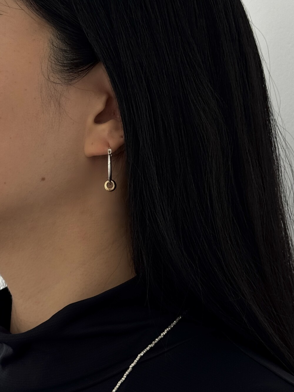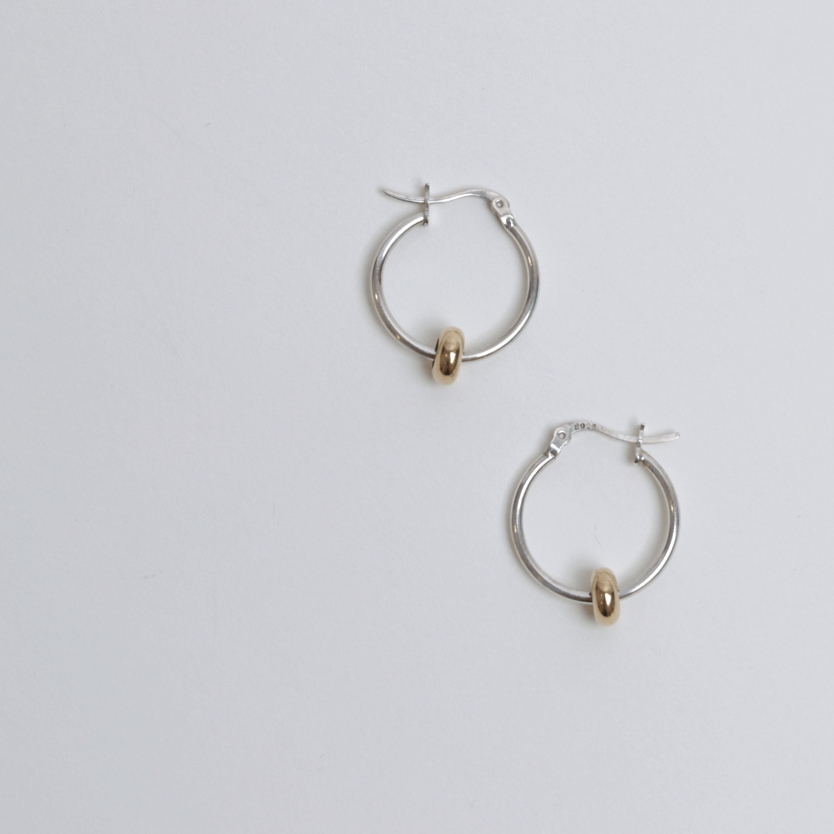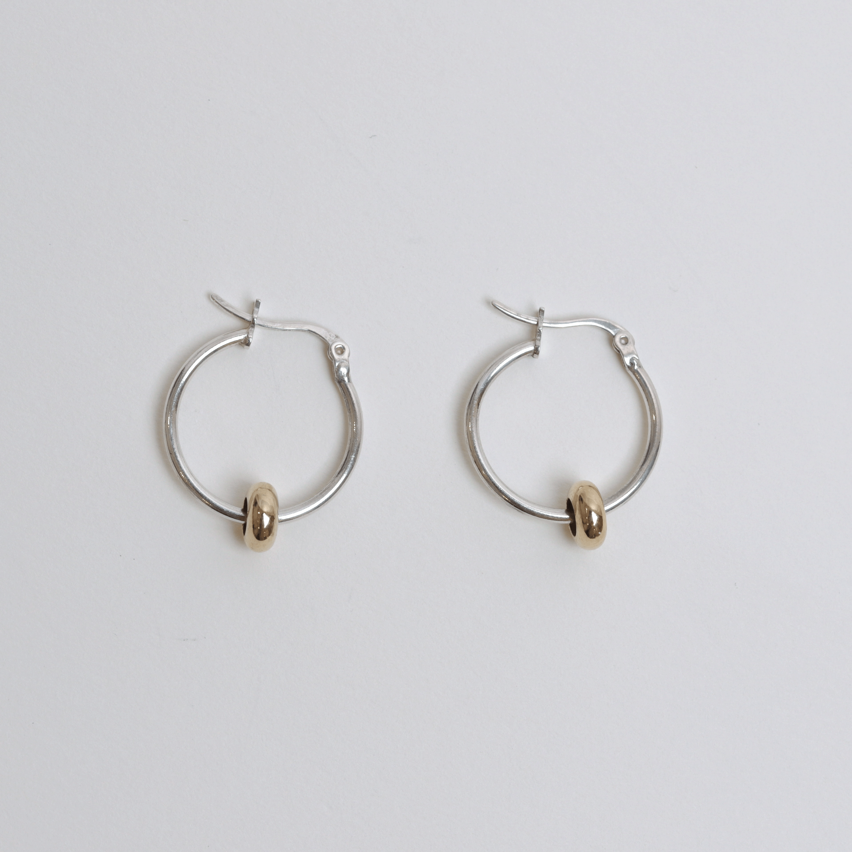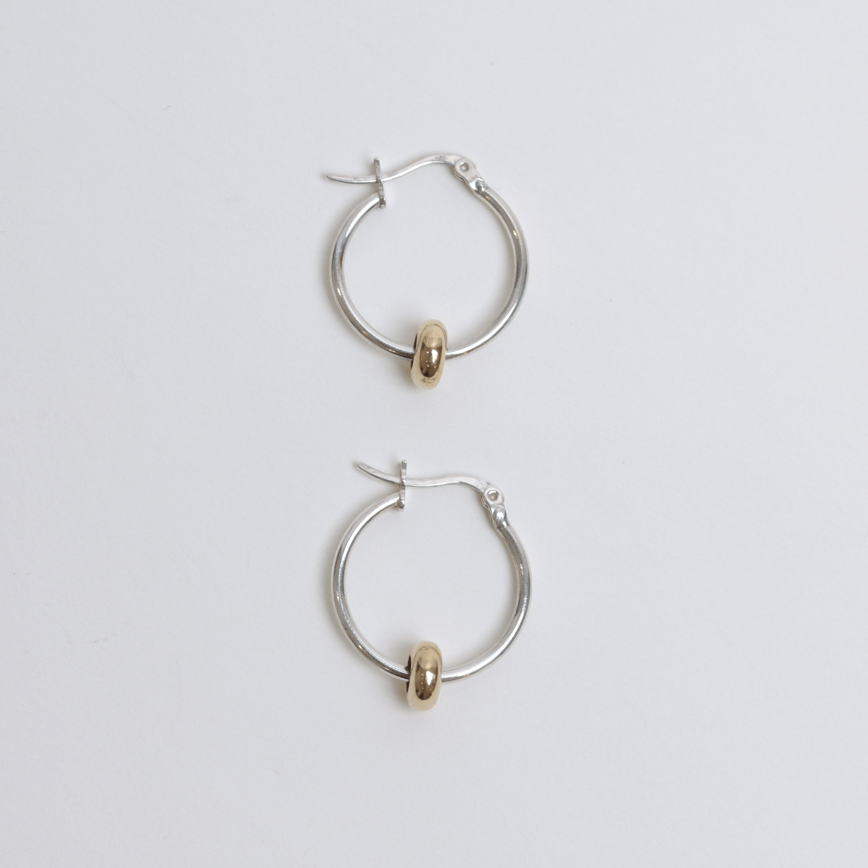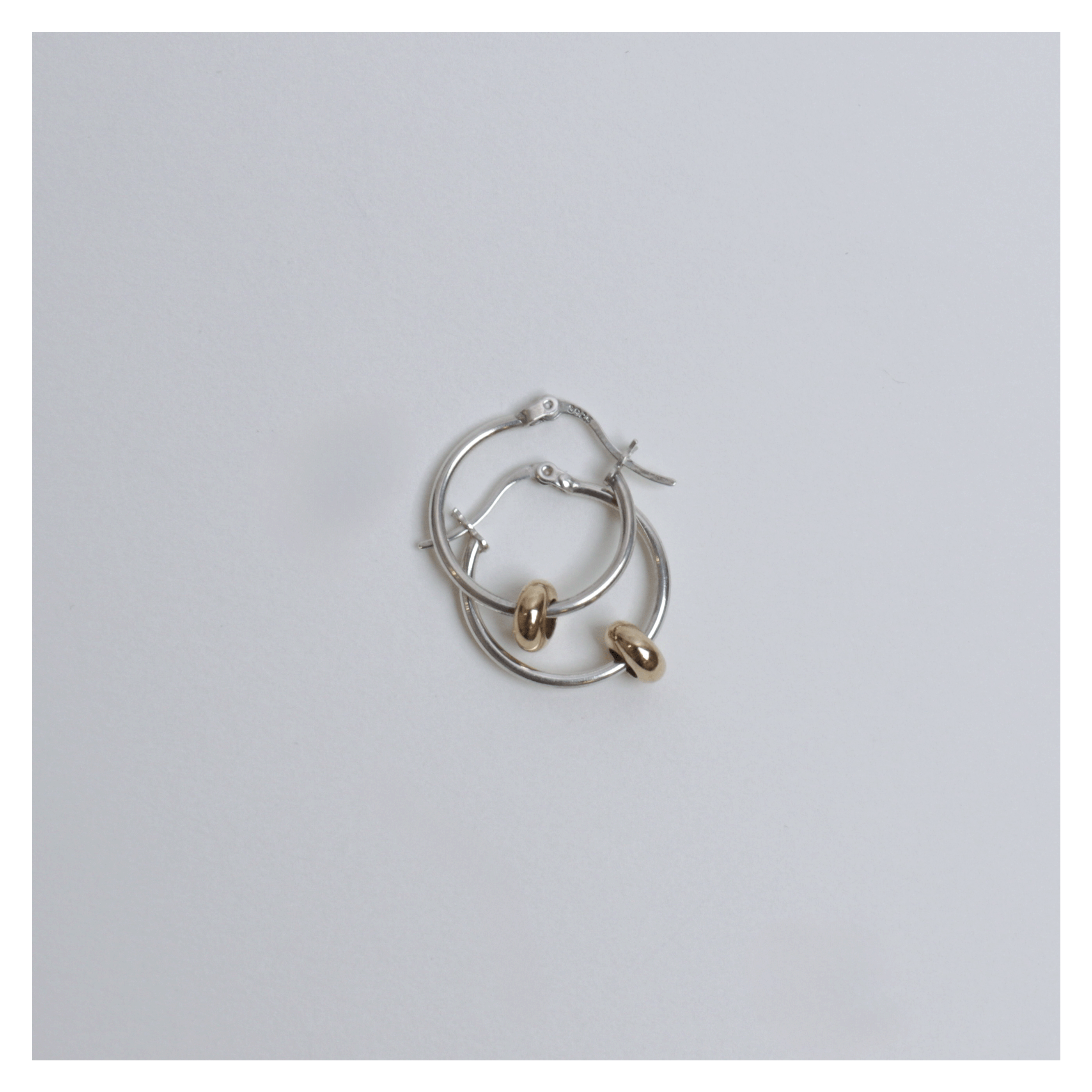 심플한 실버 후프에 골드 비드를 더해 투톤의 대비감을 살린 디자인입니다.