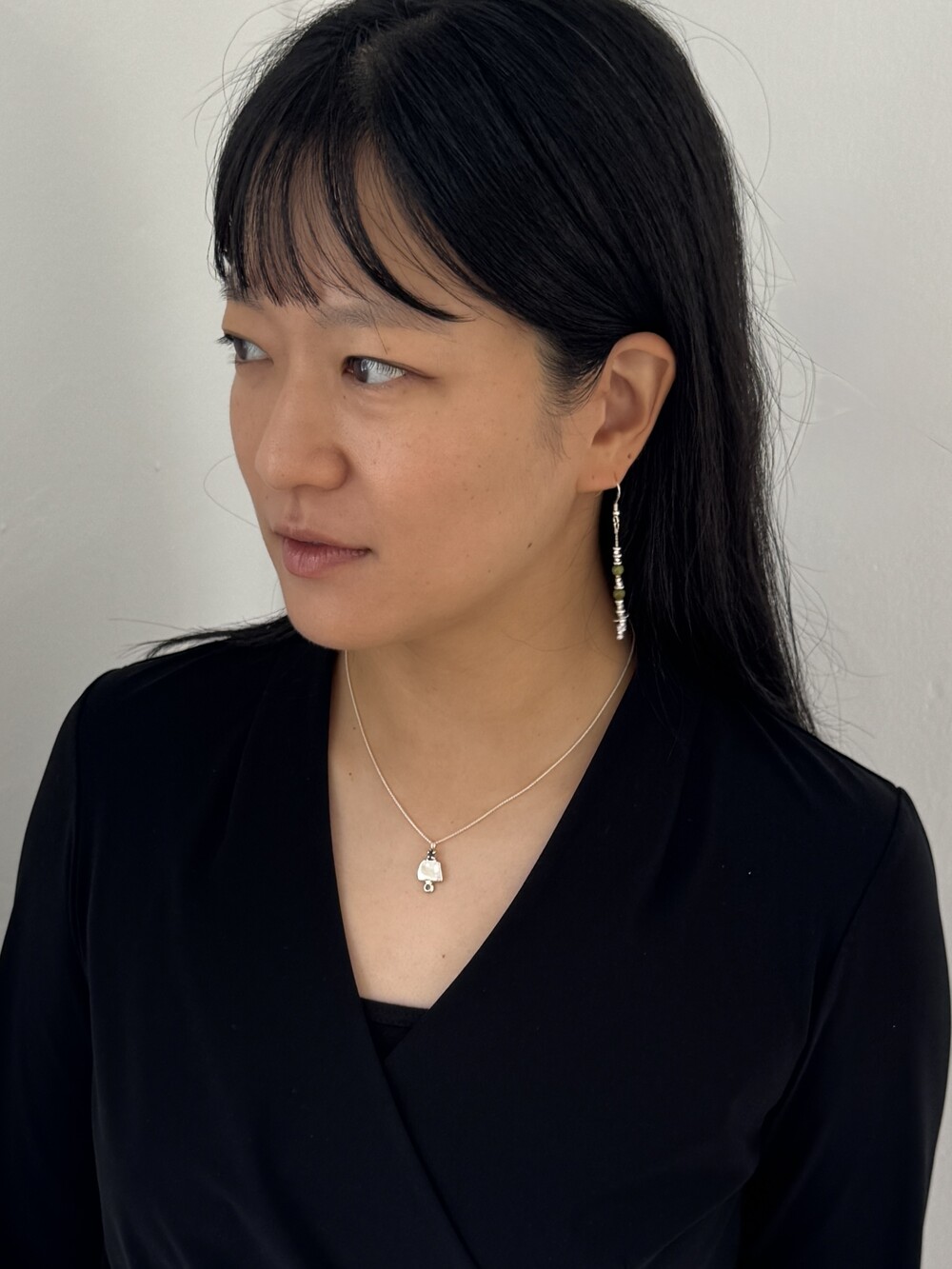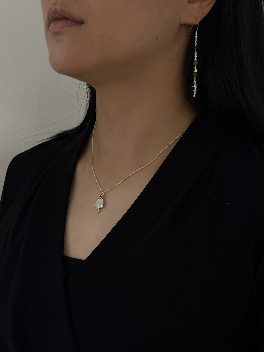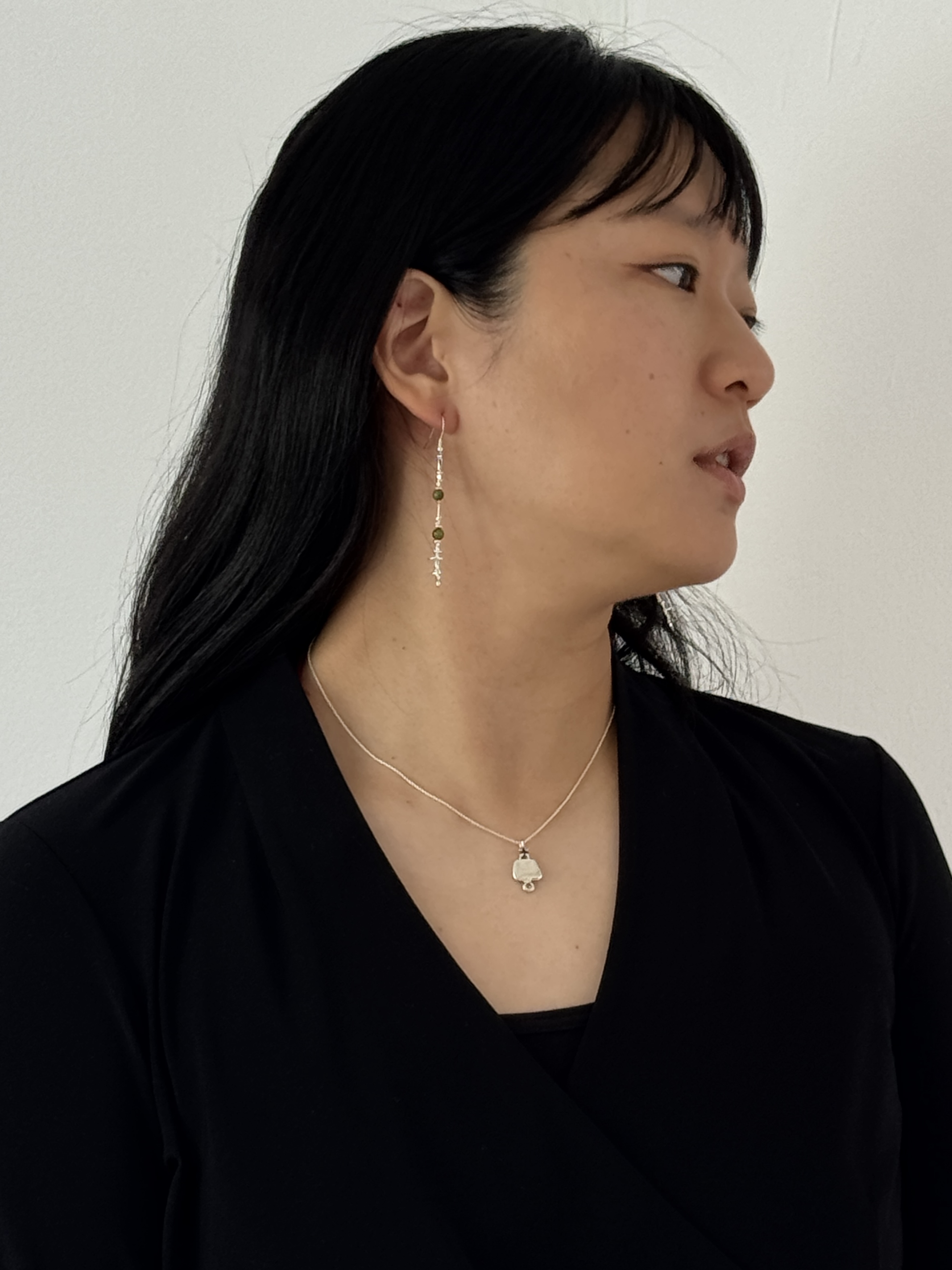 길게 떨어지는 라인이 얼굴선을 따라 세련된 실루엣을 연출합니다.