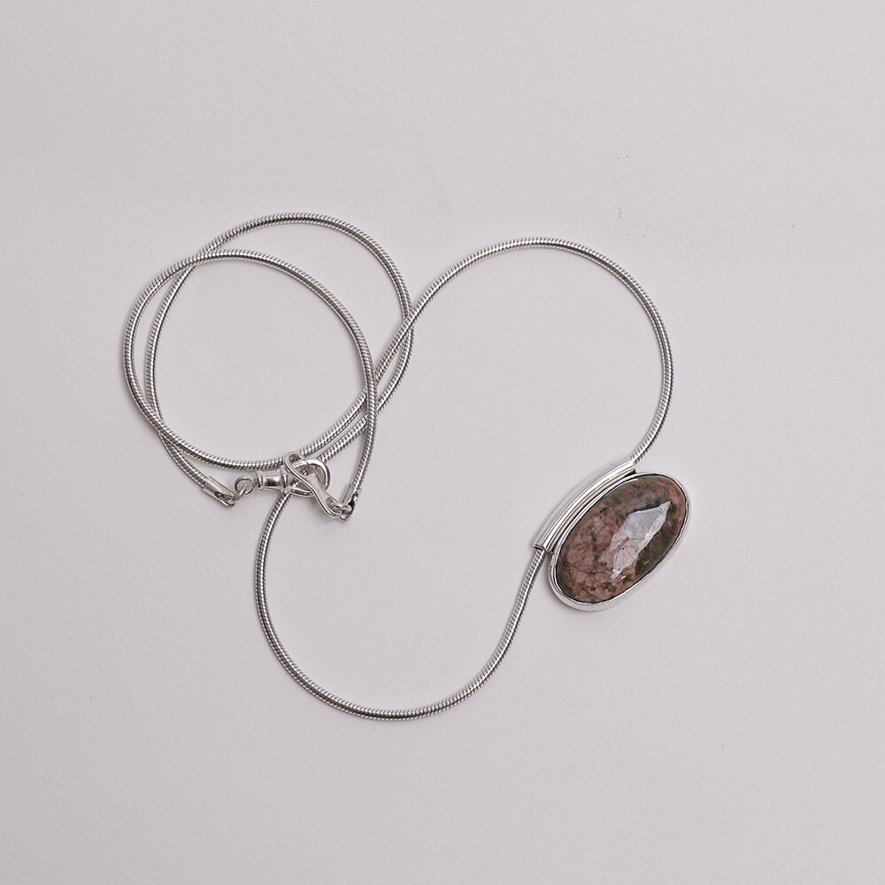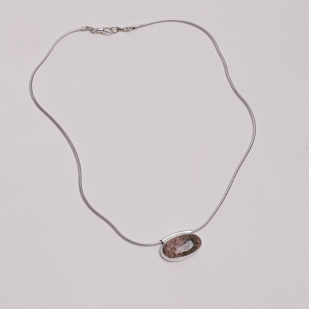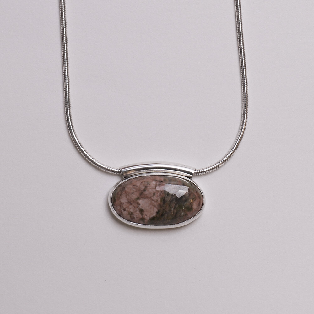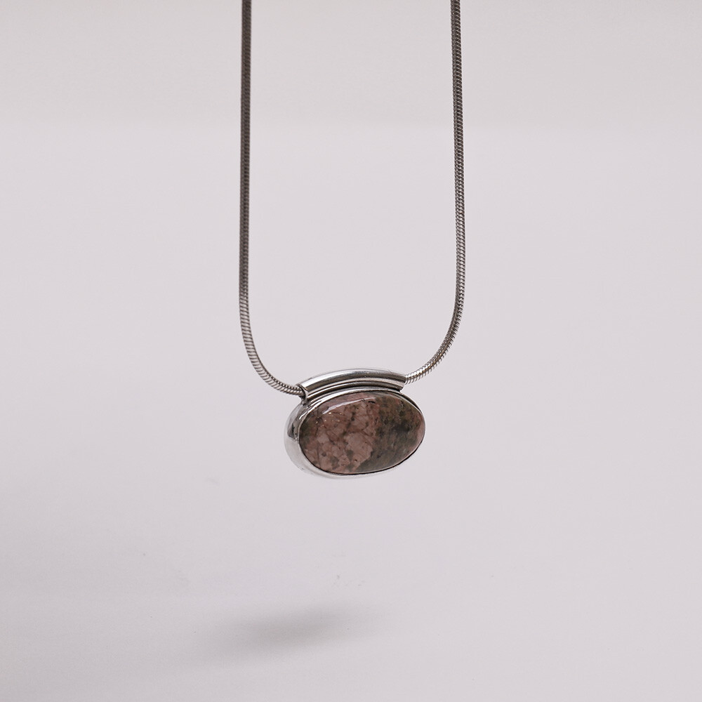 초록빛 에피도트와 온화한 핑크빛 장석이 무질서하게 섞인 유나카이트는